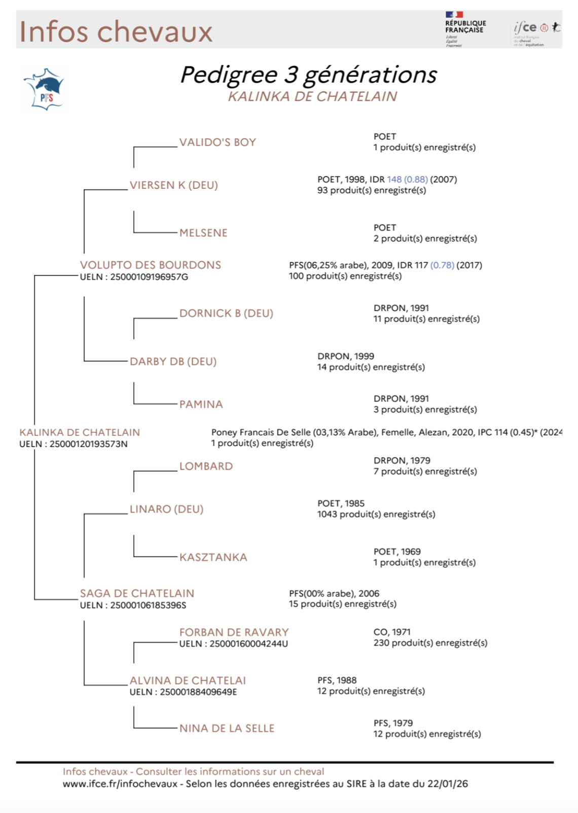 Voir la fiche IFCE de KALINKA DE CHATELAIN.